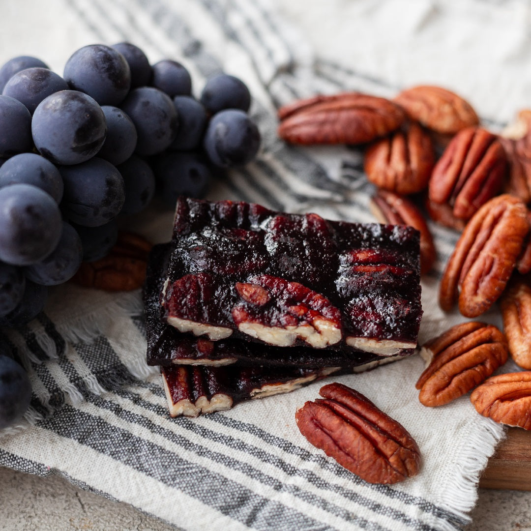 A delightful fusion of flavorsome grape juice and crunchy pecans. Moderately sweet and slightly sour. Packed with essential nutrients. Experience the perfect balance of chewy and crunchy textures and the rich natural flavor of grapes.